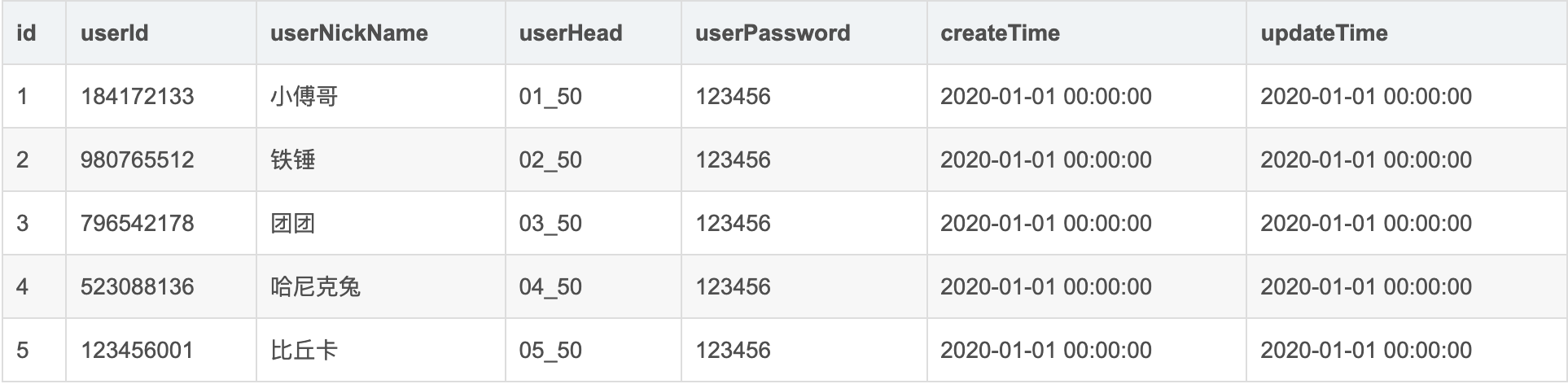 参考用户表: